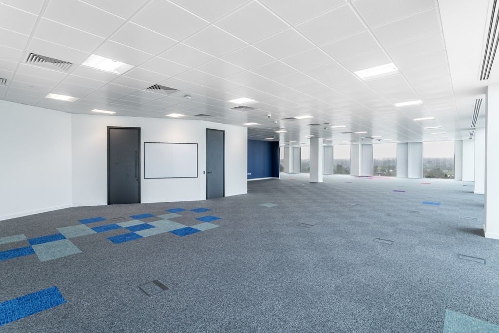 - The 4th floor is mainly open plan with 7 meeting rooms/offices, full access raised floors, a suspended ceiling, and LG7 lighting and recessed air conditioning vents.