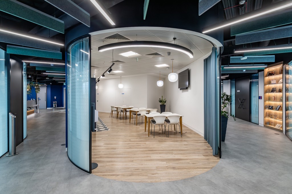 - The 5th floor serves as the main client-facing area with a reception, meeting rooms, boardroom and two kitchen areas. There is a large staff kitchen/canteen and leisure/breakout zone. The high quality fit out includes wire grid ceiling tiles, LED lighting and curved partitions to create separations within the space.