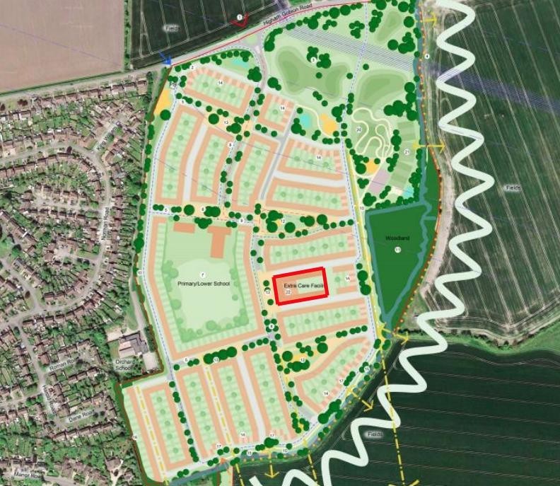 The site benefits from outline planning permission for a 60-unit extra care facility as part of a wider residential development. The wider scheme also provides for up to 500 dwellings, a lower/primary school and provision of public open space which can be found under the planning reference CB/21/02409/OUT. Planning was granted on 20th December 2024.