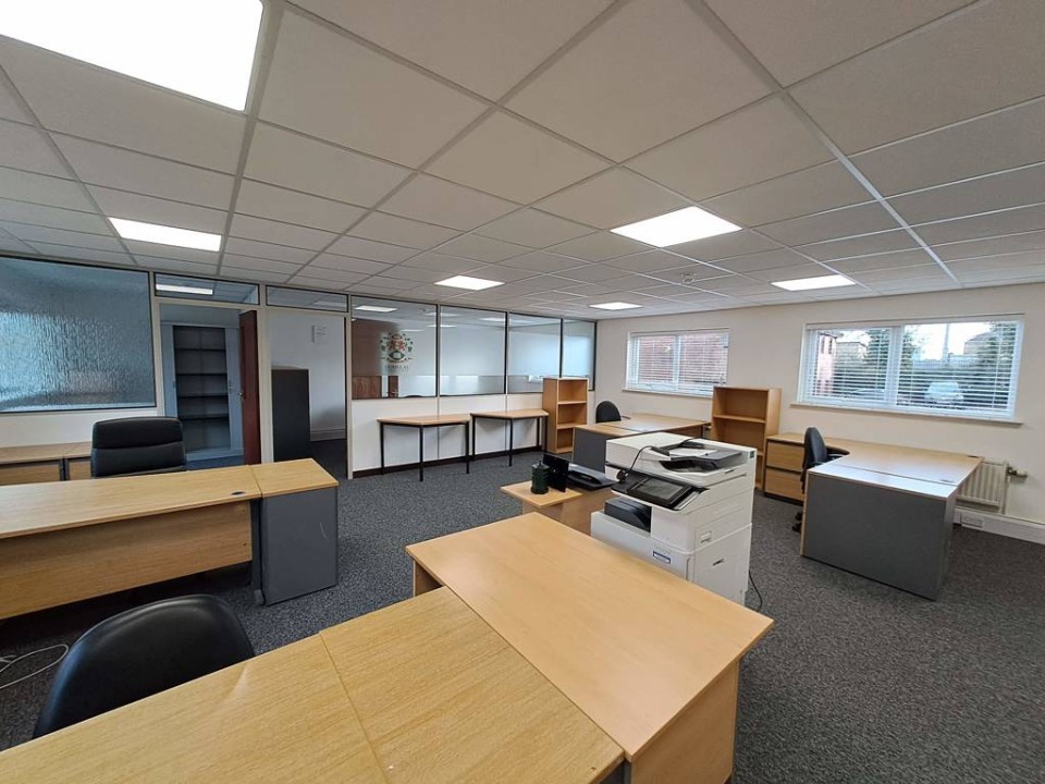 - The accommodation comprises two partitioned offices, LED lighting, kitchenette and perimeter trunking.