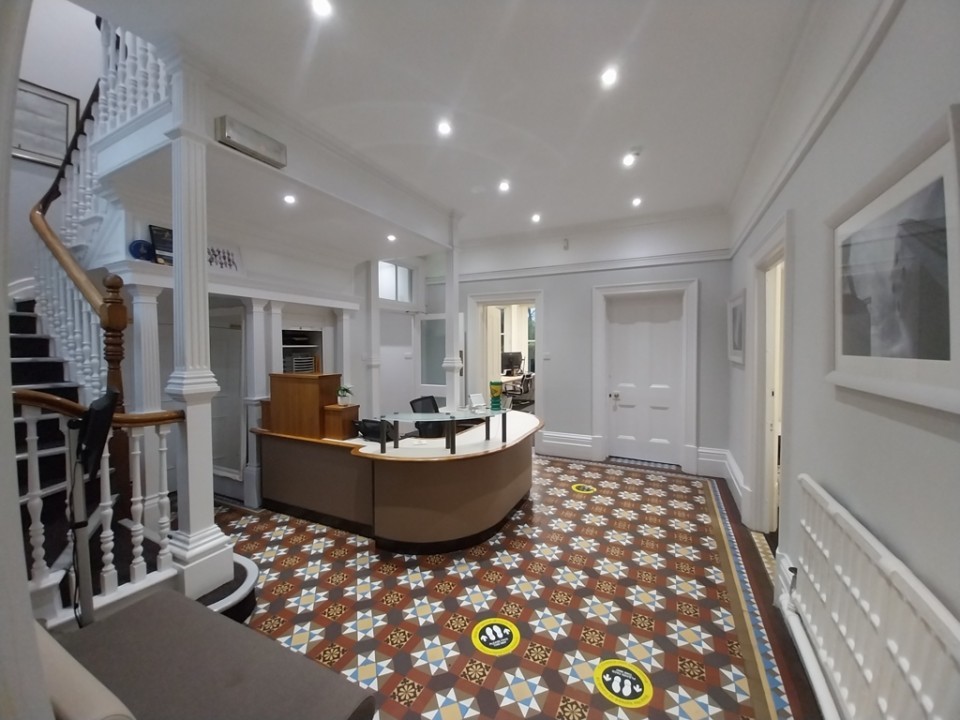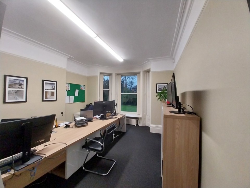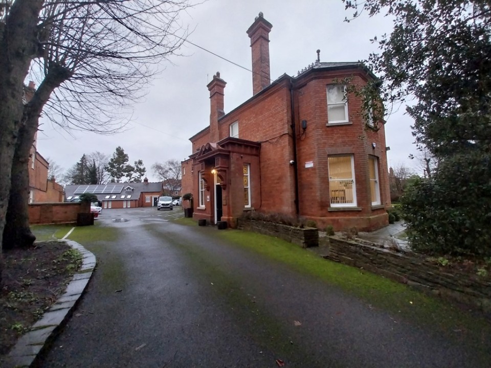 Externally, the property is set within its own grounds, with ample, secure on-site parking available to the front and side. The surrounding mature trees and landscaped areas create a pleasant and professional setting, enhancing the overall working environment.
